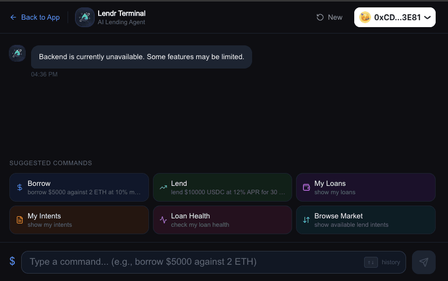 Chat in-app, DM @LendrBot on Telegram, or ge real time arb alerts on X.